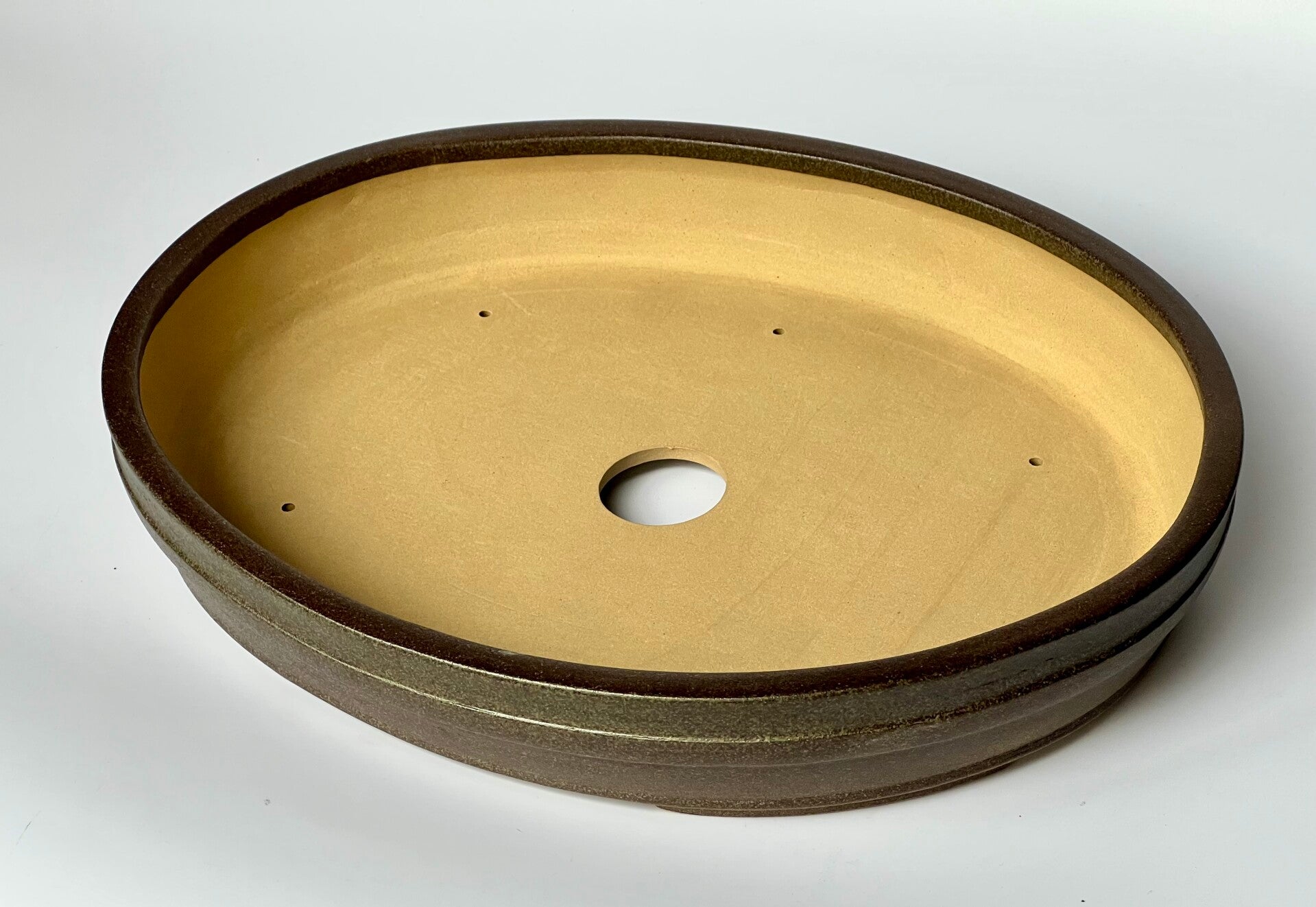 Forme : Ovale Daen-bachi (楕円鉢), liseré Tachi-agari (立ち上がり). Très populaire pour les érables et les arbres gracieux